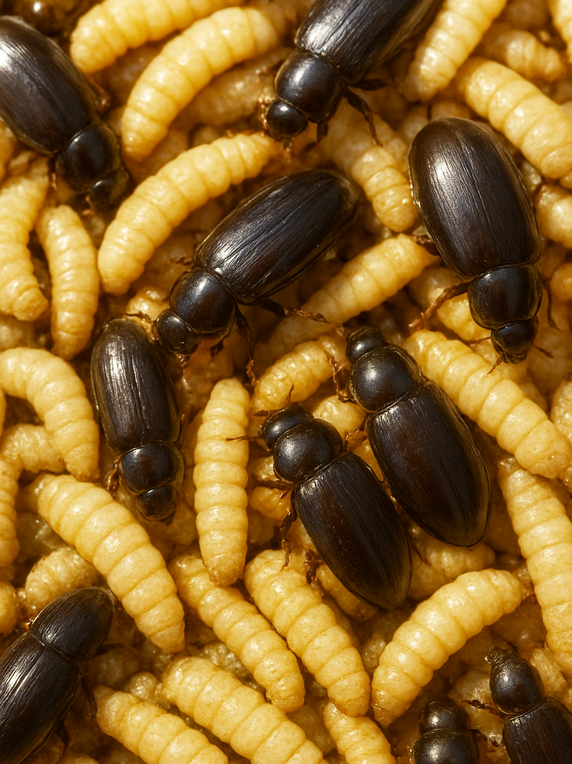 Личинка борошняного жука (жовтого мучника, хрущака) є унікальною за цілим рядом властивостей. Личинки швидко ростуть, потребують мінімум корму та води, а їх утримання не вимагає великих площ. Личинки мають висока поживність. За вмістом протеїну (до 55–60 % у сухій речовині) вони не поступаються рибній муці чи м’ясо-кістковому борошну. Вирощування личинок, яке ще кілька десятиліть тому сприймалося як екзотика ентомологів нині перетворюється на технологічно розвинену й економічно вигідну галузь агробізнесу.
